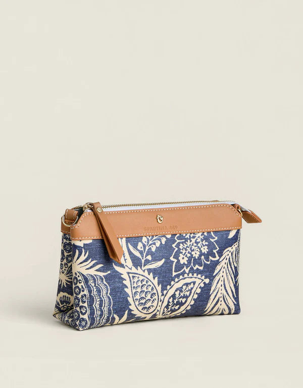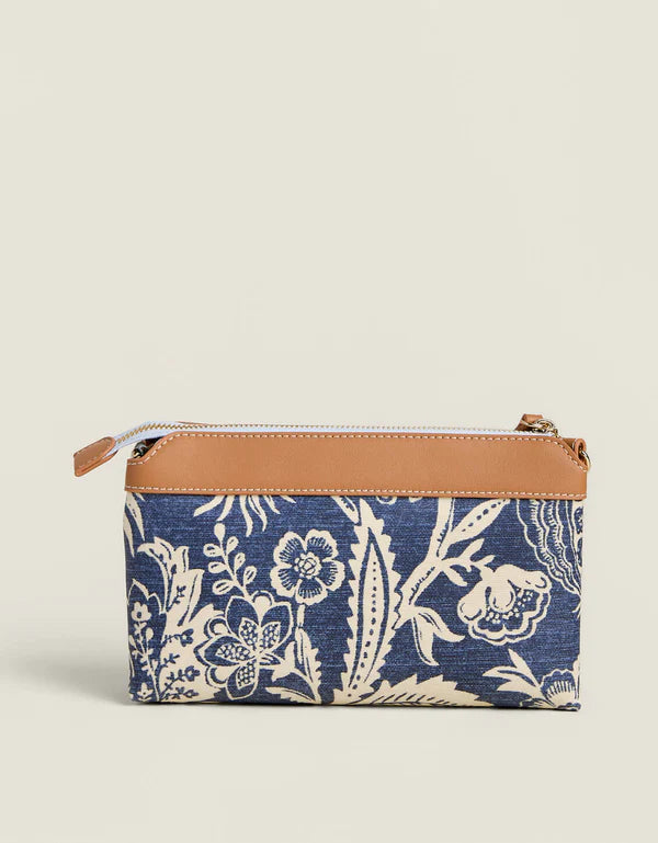 Carry on its own or slip into your favorite large tote, our Emma Crossbody is made to take you everywhere. Adorned with a lively Flagler blue pattern and accented by a brown faux leather trim, this crossbody features 3 RFID-protected card slots, a center divider with 2 bill slots and a zipper pocket.